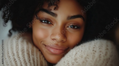 African American woman wrapped in a cozy blanket, concept of self-care and warmth