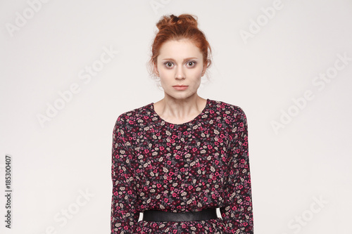 Portrait of unhappy and depressed woman with ginger hair feeling ashamed or sick, covering face with both hands, keeping eyes closed.