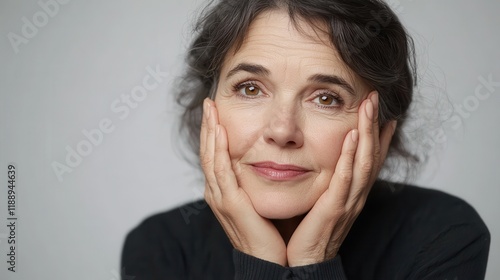 50s mid aged woman touching face skin looking at camera. Attractive mature old woman looking at camera isolated on white background advertising dry skin care treatment anti age skincare. Close up vie