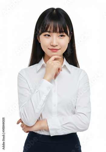 A beautiful Asian office worker woman is thinking about getting an idea for a future business plan.