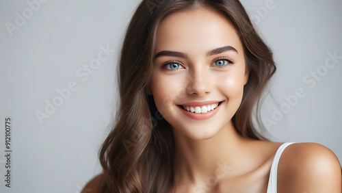 A beautiful girl's face looks calm and happy, her vivid eyes sparkle, her generous smile around her mouth, her skin and smile shine more, Spanish Mexican-German Beauty, 美少女, korean girlgroup,
