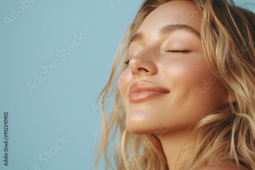 a close up of a blond woman's face