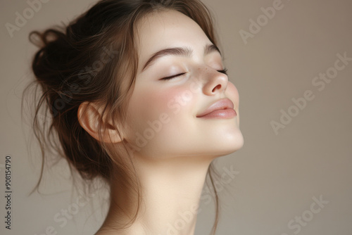 A close up of a girl's face with her eyes closed