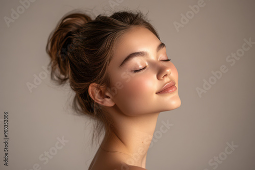 A close up of a girl's face with her eyes closed