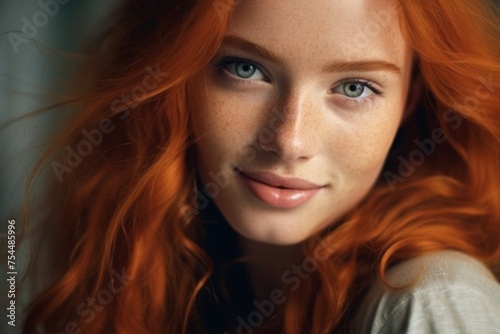 A close up of a woman with vibrant red hair. Ideal for beauty or fashion concepts