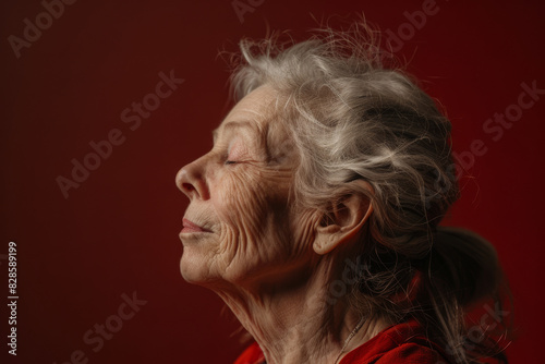 A close up of a woman's face with her eyes closed looking to a side