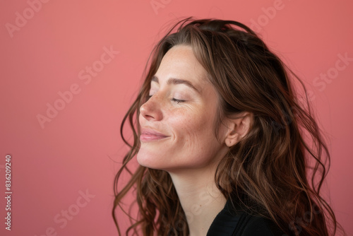 A close up of a woman's face with her eyes closed looking to a side