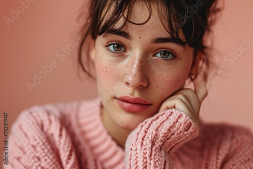 A close-up view of a woman with freckles on her face. Perfect for beauty or skincare-related projects