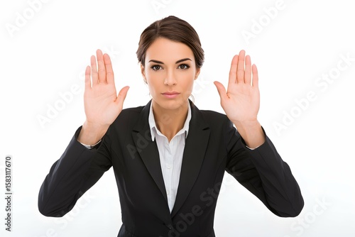A confident woman拒拒黙り, conveying firm refusal with determination and resolve.