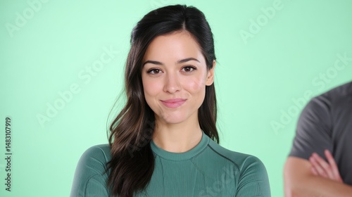 A confident young woman smiles at the camera with relaxed posture, showcasing a sense of positivity and approachability, perfect for lifestyle and personal branding imagery.