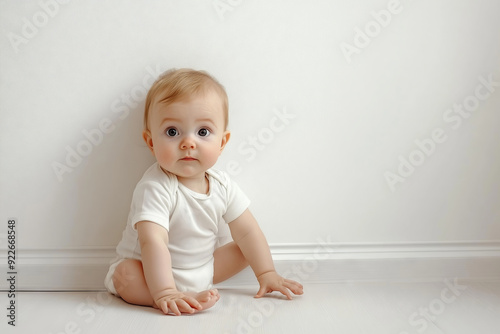 A curious baby exploring a bright, minimalist room on a sunny afternoon