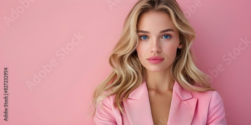 A Fashionable Woman with Stylish Blonde Hair in Pink Outfit. Concept Fashion, Woman, Stylish, Blonde Hair, Pink Outfit