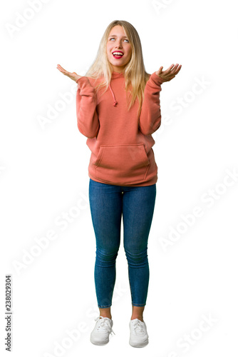 A full-length shot of a Young girl frustrated by a bad situation on isolated white background