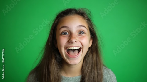 A girl with long hair grinning with excitement.