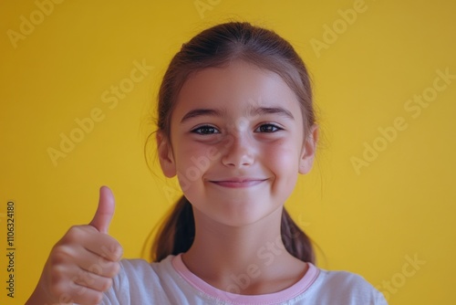 A happy young girl holding her thumb up in a positive gesture, suitable for illustrations and designs where you need a cheerful and optimistic vibe