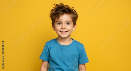 A heartwarming close-up portrait of a cheerful young boy with bright, expressive eyes and a wide, genuine smile, capturing the innocent joy of childhood.