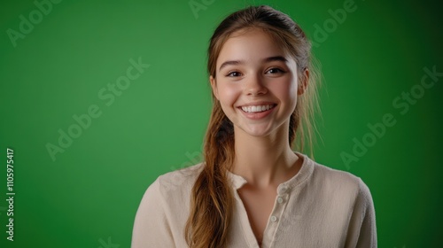 A homeschool teacher explaining a subject, with a green screen background ready for creative content