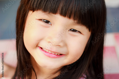 A little asian girl with a bright smile , Outdoor portrait , Thailand.