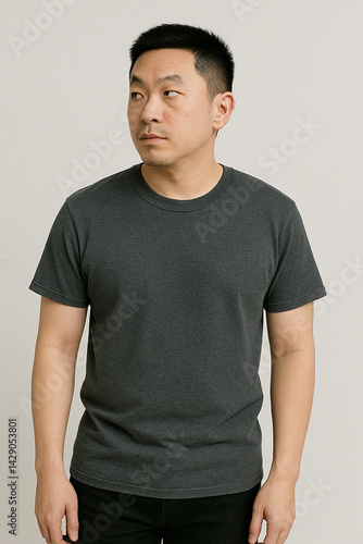 a man wearing colored blank t-shirt to put in a logo. or for mock up asset