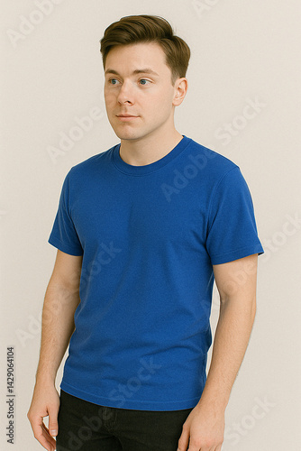 a man wearing colored blank t-shirt to put in a logo. or for mock up asset