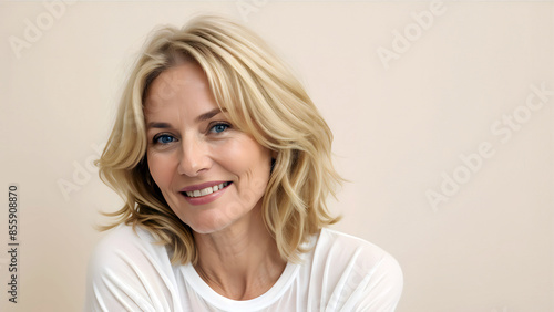 A portrait of a mature woman looks in camera. Skin care beauty, skincare cosmetics concept