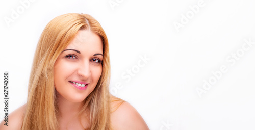 A portrait of beautiful face with beautiful brown eyes - isolated on white.