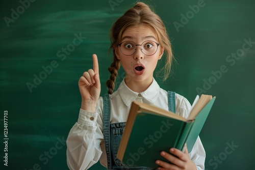 A Portrait of school girl nerd student hold book