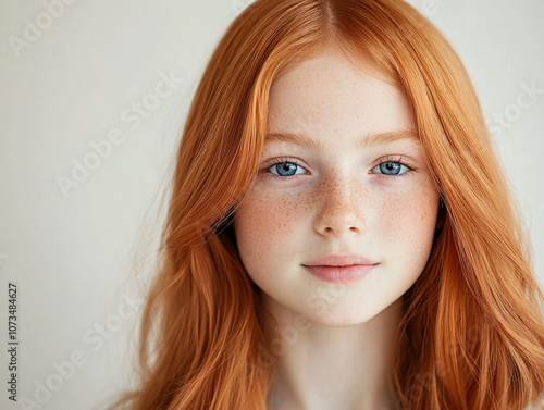 a premium hair dye packaging image featuring a 14-year-old older girl with straight, well-groomed rose gold hai