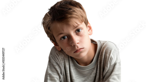 A Sad Young Boy Expressing Feelings of Discontent and Illness - Perfect for Illustrating Childhood Emotions and Health Issues