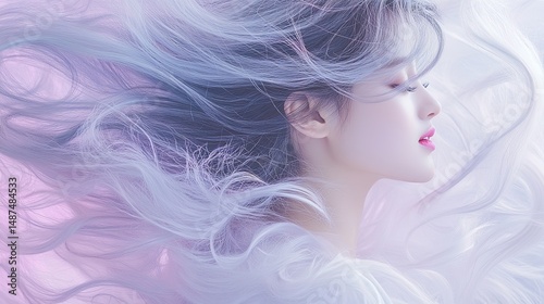 A serene portrait of a woman with flowing hair.