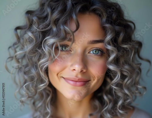 A striking close-up reveals luscious gray ash curls, glistening with shine. The soft waves cascade elegantly, highlighting the hair's texture and beauty in gentle natural light. Generative AI