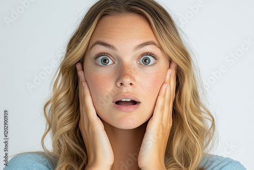 A surprised young woman with wavy hair, expressing shock or amazement.