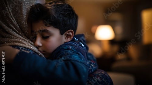 A Tender Embrace: Mother and Son's Nighttime Comfort