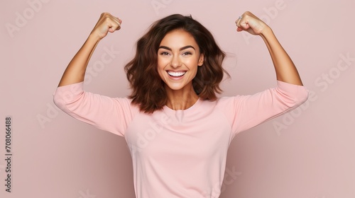 A woman who is perky, full of strength, and happy is having fun on an isolated wall.