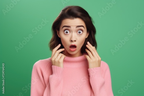 A woman with a surprised look on her face. Can be used to depict shock, surprise, or astonishment