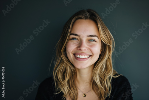 A woman with blonde hair and green eyes smiles for the camera