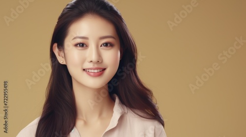A woman with long brown hair wearing a white shirt. Versatile image suitable for various uses