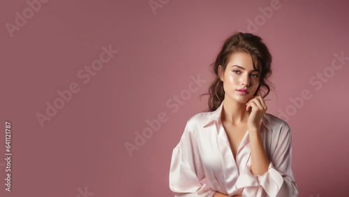 A woman with manicure in stylist poses, cosmetic, skin care advertising.