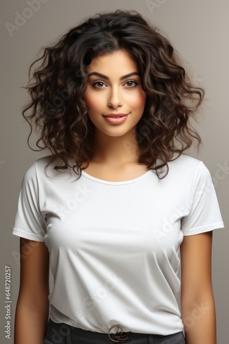 A young African American woman wearing a plain shirt with a simple background. Generative AI.