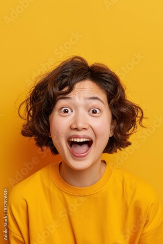 A Young Asian Lady Feeling Happiness With A Positive Expression, Joyful Surprise, Funky Dressed In Casual Clothes