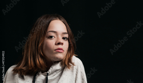A young girl on a dark background