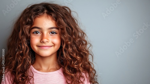 A young girl smiling with her beautiful curly hair