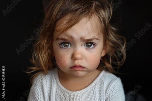 A young girl with a melancholic facial expression, often used in illustrations for children's stories or to convey empathy