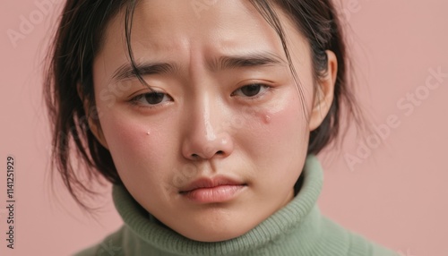 A young Korean girl with a distressed expression, emphasizing her emotional state, suitable for storytelling and cultural art.