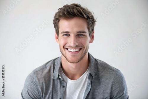 A young man smiling at the camera, exuding confidence,A confident young man with a bright smile, looking at the camera,An image of a smiling young man, radiating confidence.