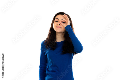 Adorable teenage girl with blue sweater