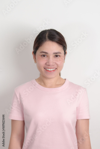 Adult woman with pink Shirt for Pink October Breast Cancer Awareness month, May Women Health, women rights, Empowerment, March International Women day, February Valentine, May International Mother