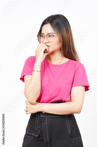 Afraid , nervous and bite nails Of Beautiful Asian Woman Isolated On White Background