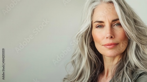 ageless radiance confident mature woman with long gray hair and glowing skin beauty portrait