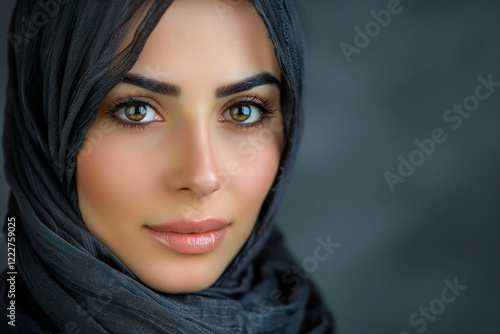 AI generated image of confident arabian asian muslim woman in abaya hijab